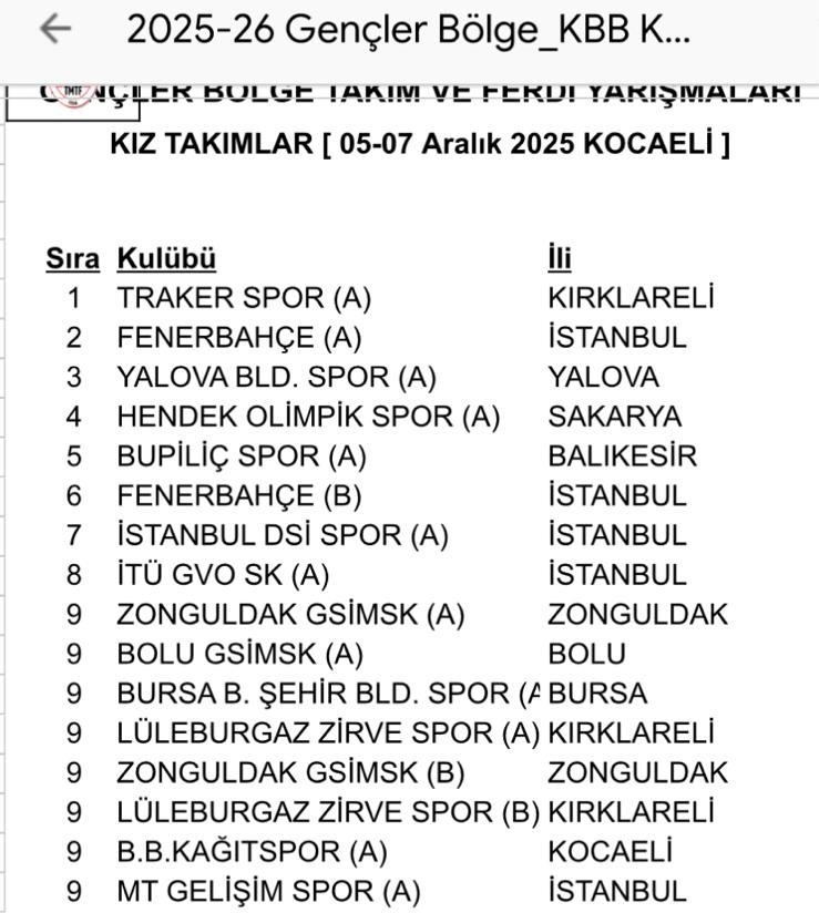 5-7 Aralık 2025 Türkiye masa tenisi federasyonu tarafından düzenlenen 26 bayan takımın katıldığı "Kuzey Batı Bölge Gençler Takım ve Ferdi şampiyonası"nda Traker Spor Kulübümüz namağlup final maçında süper lig takımı Fenerbahçe Spor Kulübünü 3-1 yenerek Şampiyon oldu
